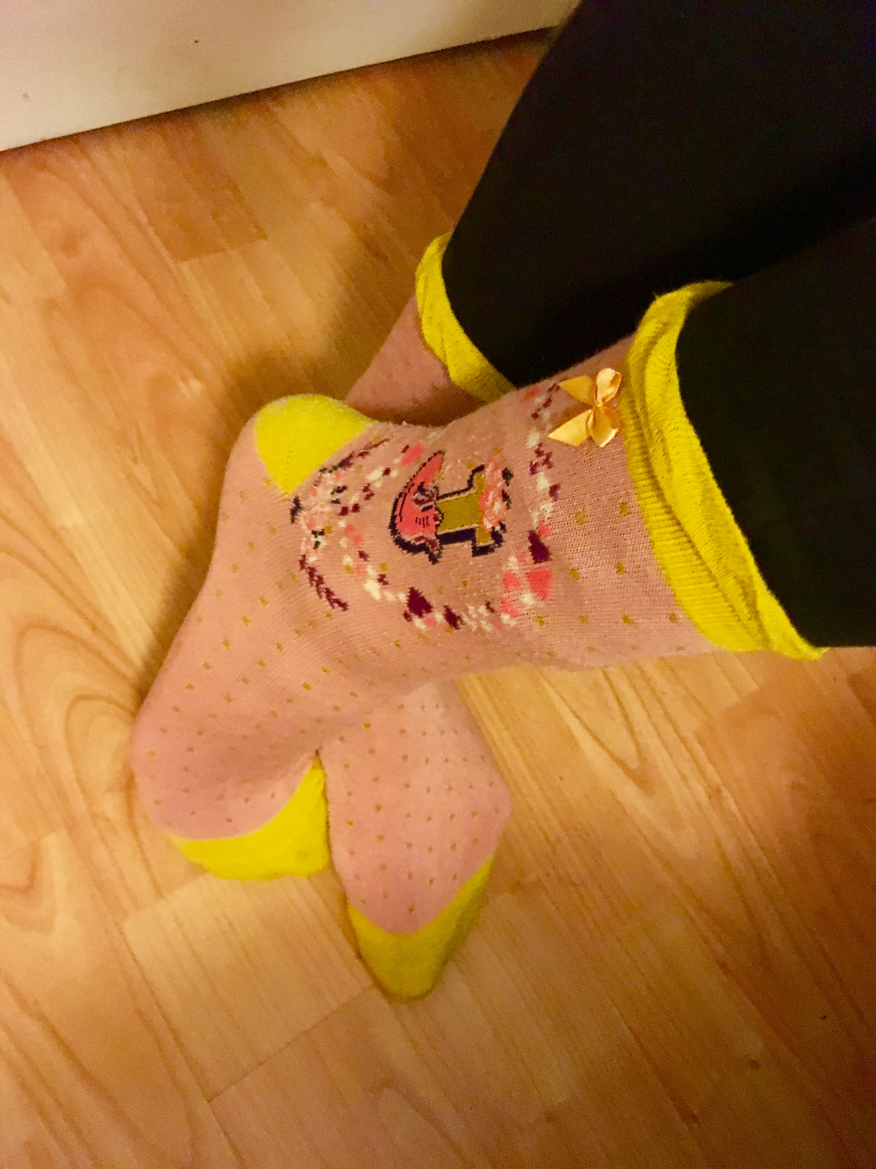 I’m gonna be wearing my COLOURFUL SOCKS today, pulled up HIGH